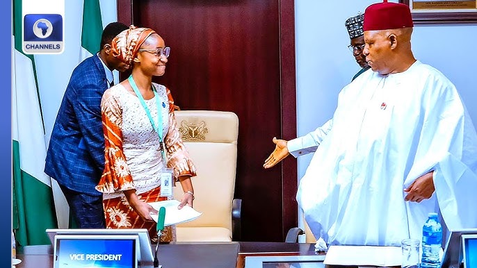 The symbolic handover saw Vice President Kashim Shettima vacate his seat temporarily to allow the young advocate step into his role at the Presidential Villa, Abuja.